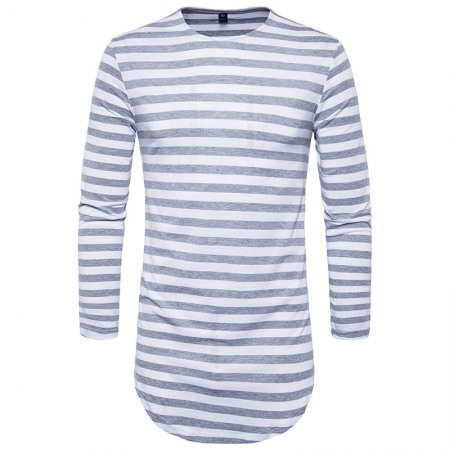 Hip-Hop High Street Summer Men's Round Hem High Street Striped Long T-Shirt
