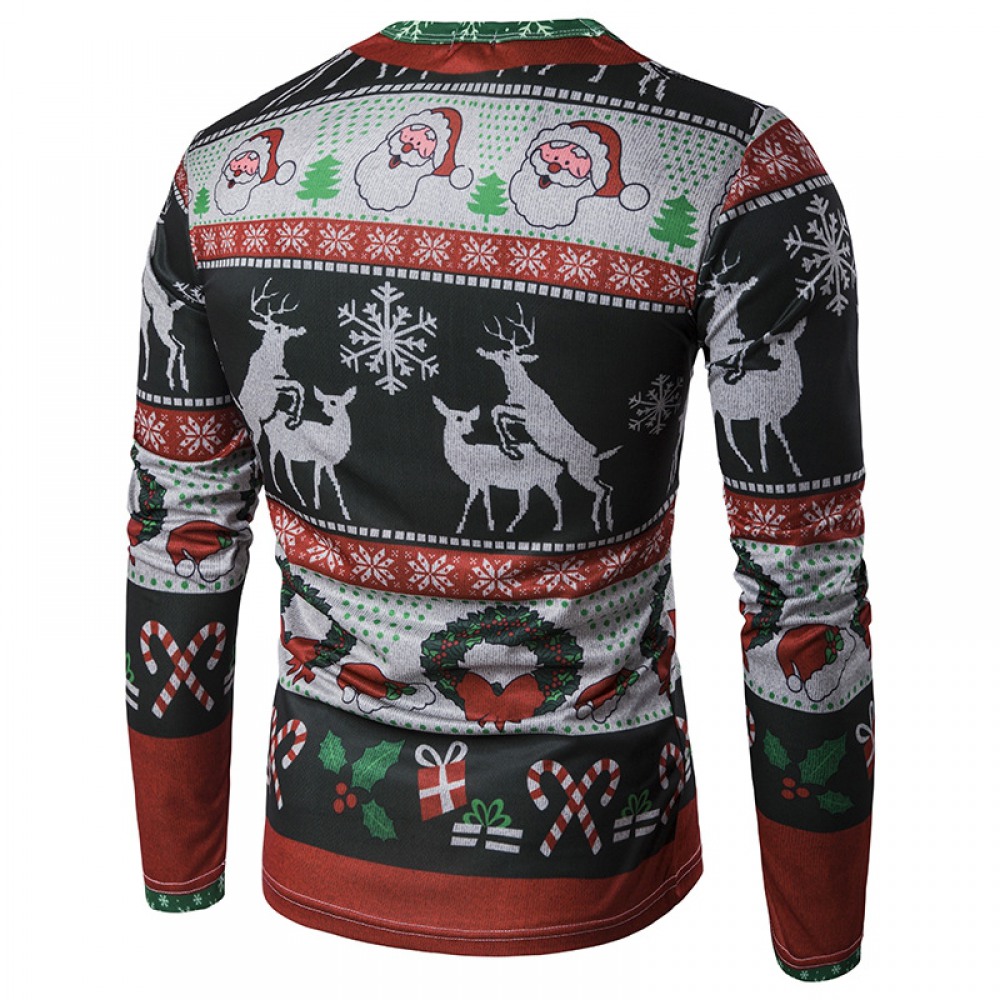New Style 3D Personality Printing Fashion Men's Christmas Elk Pattern Long-Sleeved T-Shirt