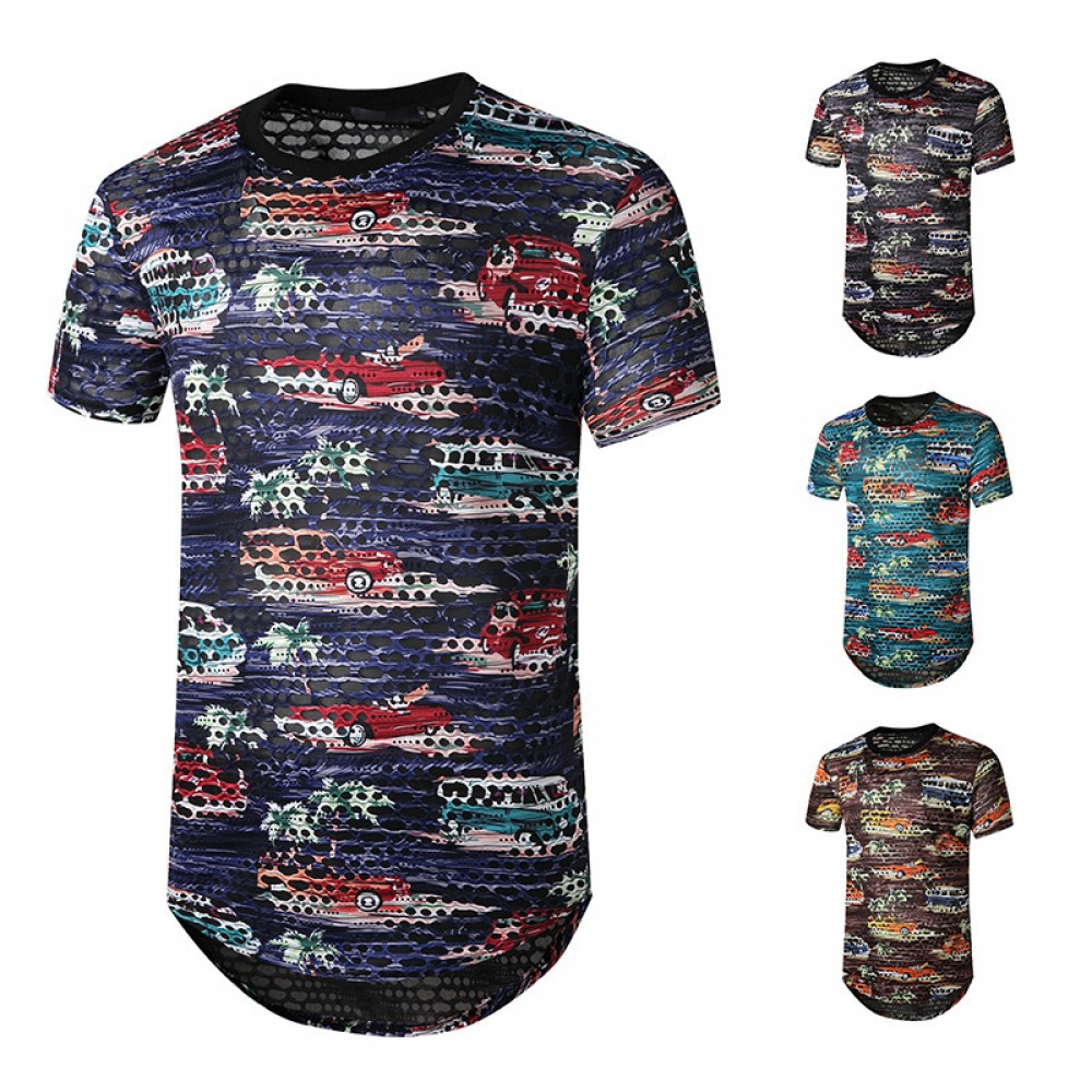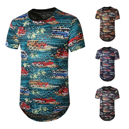 Summer Men's Nightclub Bar Fashion Casual Hot Stamping Printing Short-Sleeved Printed T-Shirt