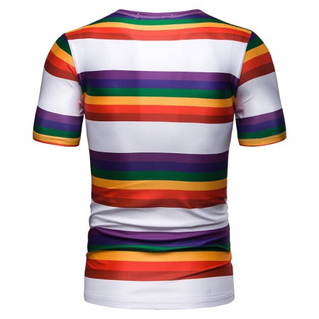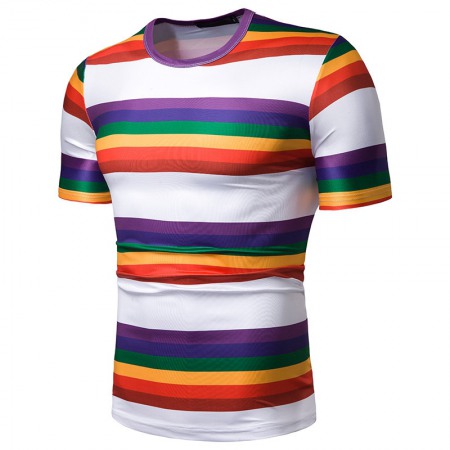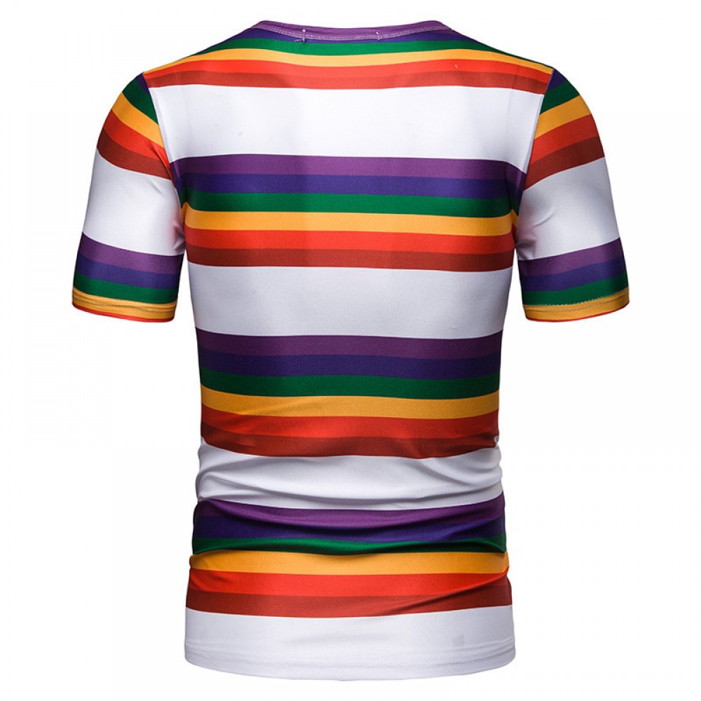 New Summer Men's Short-Sleeved T-Shirt Mens Contrast Striped Slim Casual T-Shirt